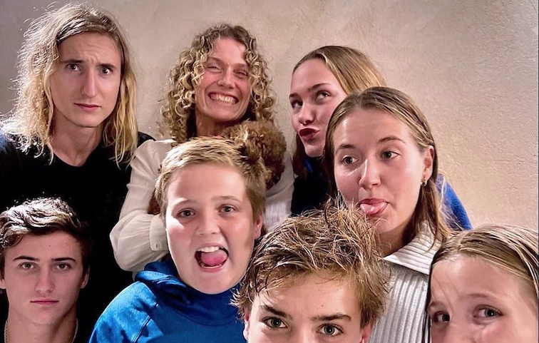 En la primera foto, Maru posó junto a Agustín, Lucía, Matías, Sofía, Santiago, Juan Ignacio e Inés y le dedicó dulces palabras. En la segunda imagen se los puede ver a todos en el living, viendo una película juntos que algo tiene que ver con ellos: Más barato por docena.