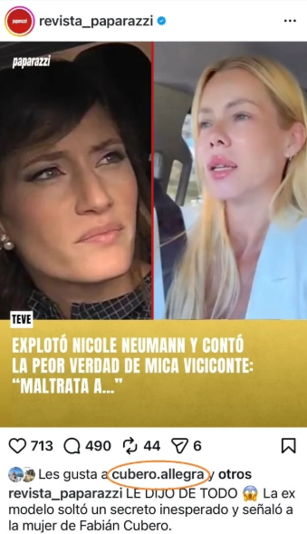 Y luego del descargo de Nikita, la adolescente sorprendió con una llamativa reacción contra Mica Viciconte, con quien siempre pareció tener una relación armónica. ¿Qué hizo la hija de la modelo? Le dio “Me gusta” a una publicación de Paparazzi en Instagram; justamente, una nota cuyo titular mencionaba los “maltratos” de Mica.