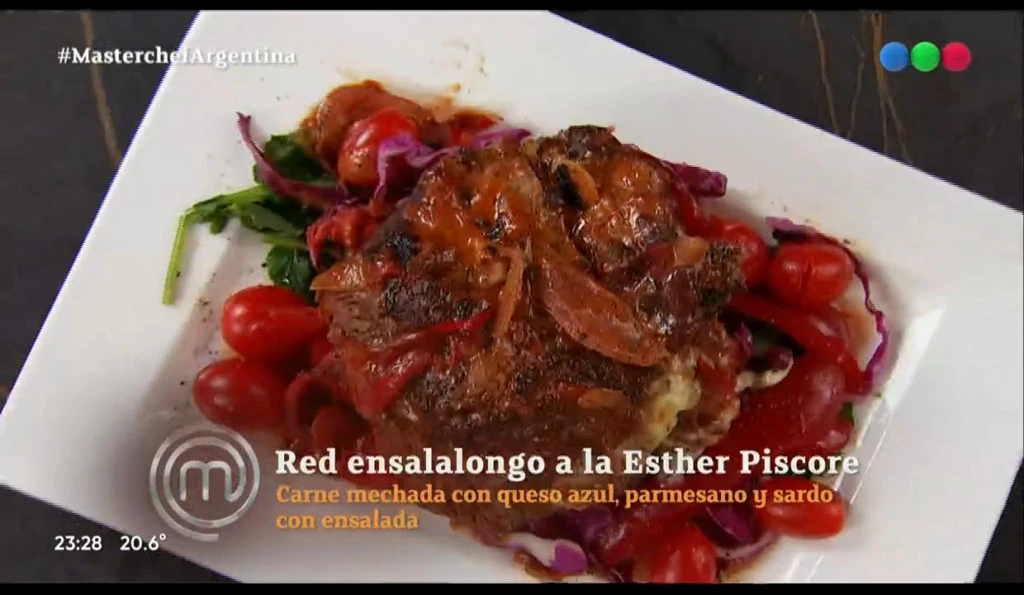 El cantante eligió preparar una carne mechada con queso azul, parmesado y sardo con ensalada. El jurado elogió el color del plato pero le criticó el sabor, ya que el queso había anulado el resto de los sabores.