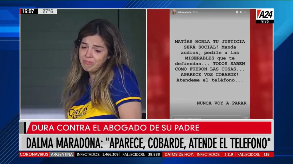 Analizando este intenso cruce, y especialmente a tan pocos días del fallecimiento de Diego, Mauro Viale utilizó su espacio en el ciclo Más que Noticias y se metió de lleno en la polémica: “Está desarrollándose ahora la crisis de la muerte de su papá, está saliendo ahora todo el dolor de las chicas”.