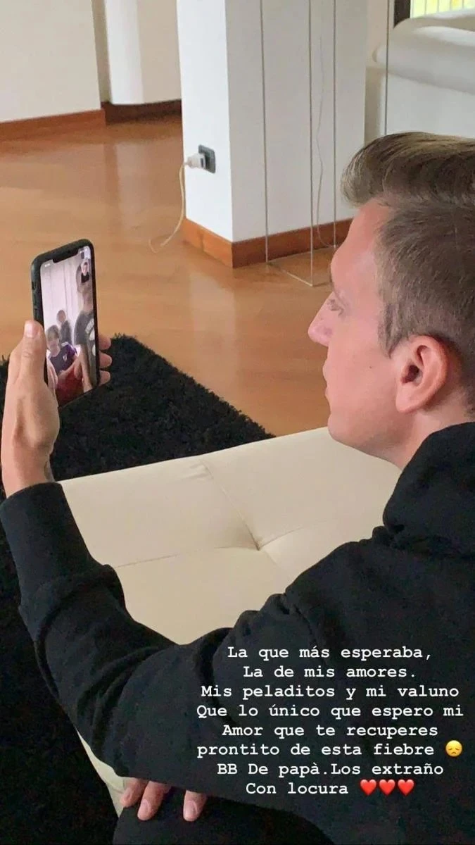 Por eso, en una reciente publicación en sus historias de Instagram, el jugador mostró una foto en la que se lo ve comunicándose con sus hijos, Valentino, Constantino y Benedicto a través de una videollamada.