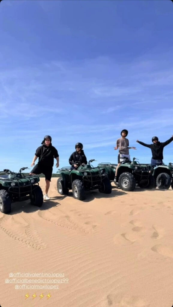 Las imágenes, compartidas en redes sociales, no tardaron en viralizarse y convertirse en tema obligado entre los fans que siguen de cerca cada movimiento del clan. La tanda de fotos mostró a los chicos arriba de cuatriciclos, en plena travesía por las dunas.