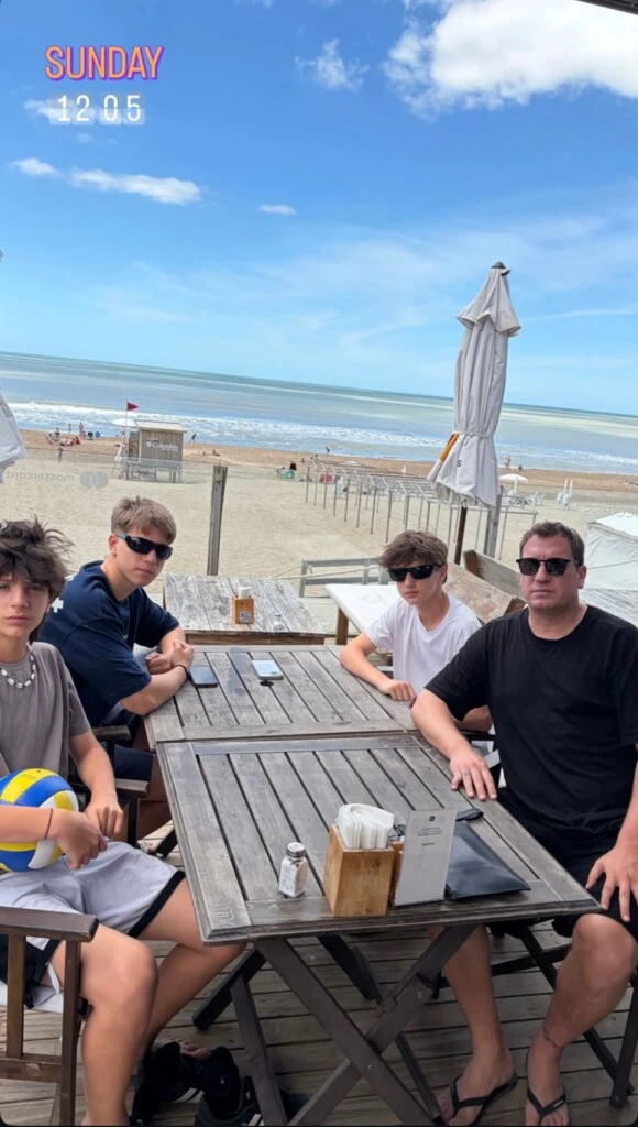 El cierre de la secuencia fue una imagen grupal en la que, acompañados por su padre, posaron con el mar detrás y las carpas blancas del balneario asomando sobre la arena. La escena reforzó el tono familiar y cercano que los suele caracterizar.