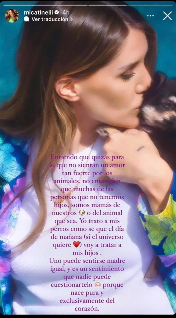 "Uno puede sentirse madre igual, somos mamás de nuestros perros. Los trato como sé que el día de mañana voy a tratar a mis hijos", escribió Mica.