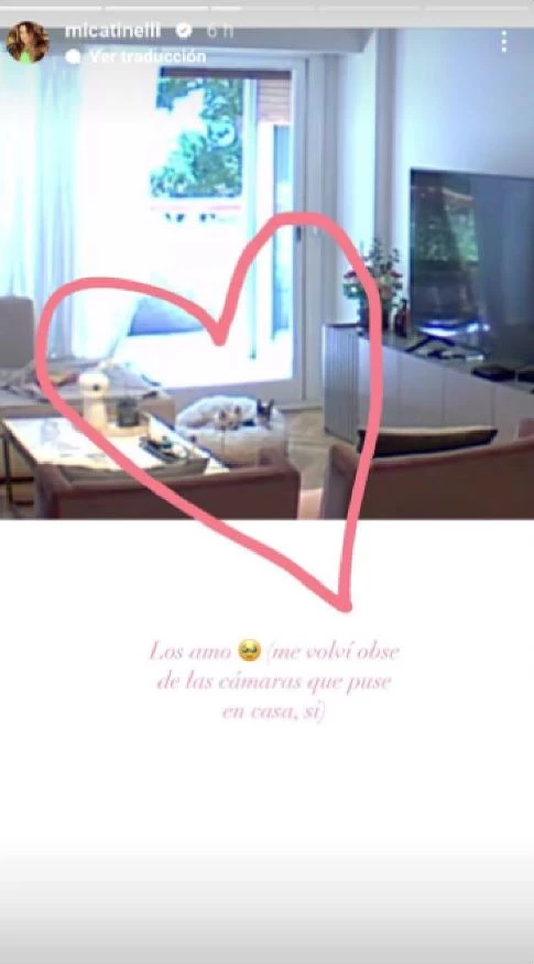 Conmovida con la imagen de los animales, la creadora de Ginebra reconoció en sus historias que suele mirar a sus perros a través de las cámaras que instaló por seguridad en su casa y, también, para estar al tanto de todo lo que pasa en la vivienda con sus compañeros peludos.