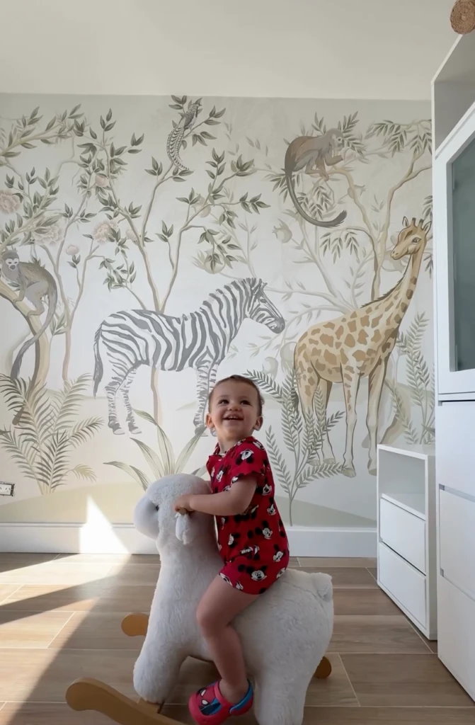 El empapelado, que representa una variedad de animales de la selva, como leones, tigres, monos y elefantes, es un detalle encantador que seguramente hará que Luca se sienta como si estuviera viviendo en una verdadera jungla. Viciconte, quien es una madre cariñosa y dedicada, siempre está buscando formas de hacer que la vida de Luca sea más especial.