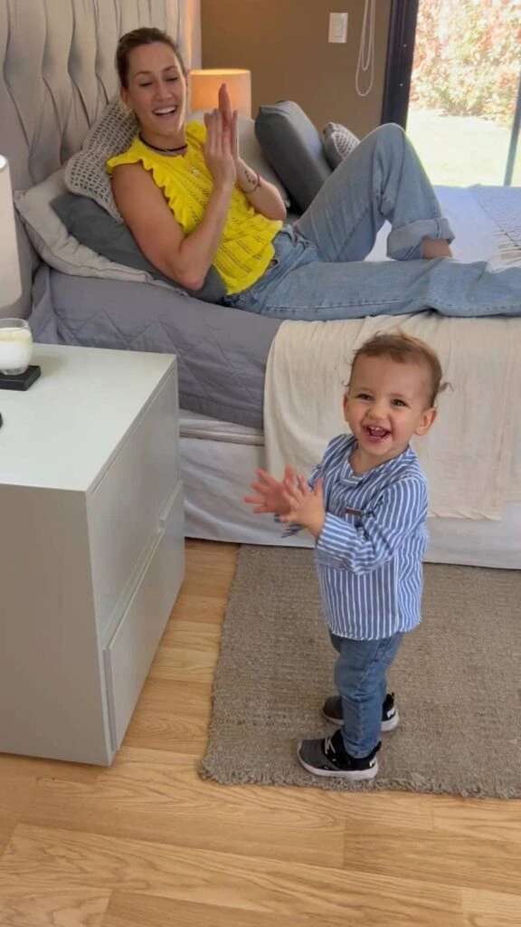 Entre las primera imágenes que mostraron se puede ver a Luca Cubero jugando mientras Mica Viciconte recibe las primeras compras en el hogar. En esta foto se puede ver que la casa cuenta con dos plantas, ya que una moderna escalera conecta la planta baja con la superior, en donde se encuentran las habitaciones.