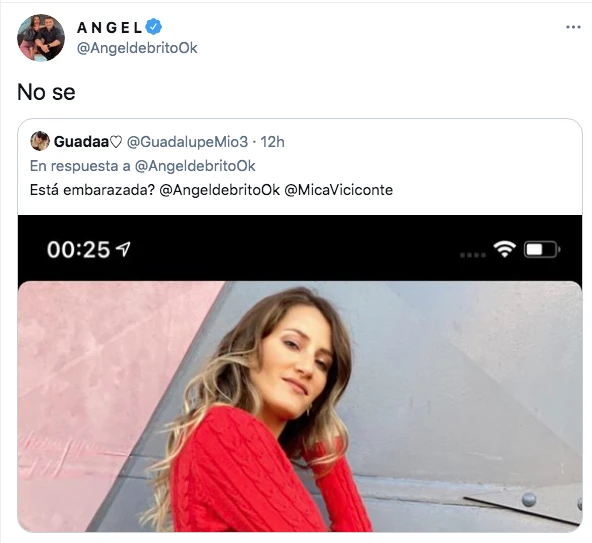 Asimismo, los fanáticos de la exchica Combate decidieron consultarle a Ángel de Brito sobre este tema, y utilizando una de las últimas fotos que publicó ella en donde se la ve de perfil posando con un sweater rojo holgado y un pantalón engomado negro, una usuaria preguntó: “¿Está embarazada, Ángel?”