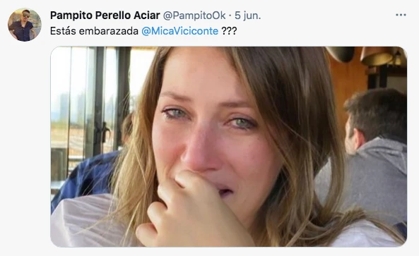 Pero ahora, volvió a surgir la duda: ¿está embarazada? Y es que, a pesar de haberse visto envuelta en estos rumores en reiteradas oportunidades, en los últimos días Mica publicó una foto suya en sus historias de Instagram en las que se la veía llorando, y para darle una pista a sus seguidores de qué se trataba, escribió: “La alegría también se demuestra con lágrimas”.