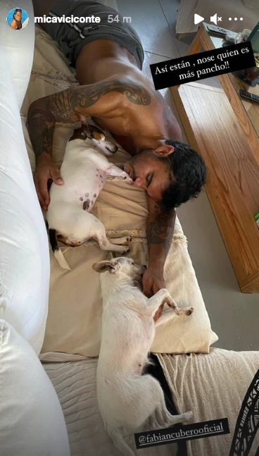 Mica Viciconte y Fabián Cubero se convirtieron, por primera vez, en papás caninos. Después de rescatar a una hermosa perrita blanca, se la llevaron a su casa y ya es parte de la familia. Amante de los animales, la ex panelista tenía a Aloha, su mascota desde sus épocas de soltera que, desde un primer momento, empatizó con Poroto y la convivencia fluyó.