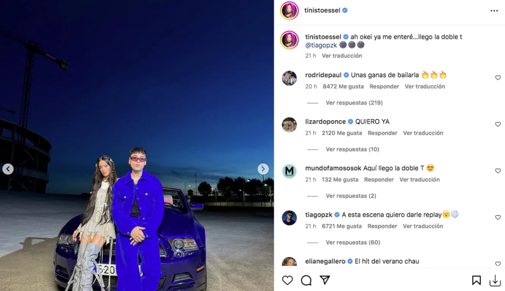 Pero esa no fue toda la sorpresa que Tini tenía preparada para sus seguidores virtuales. Sino que, además, Mariana anunció la fecha en la que se estrenará la colaboración musical, una de las grandes estrategias comerciales de estos tiempos.