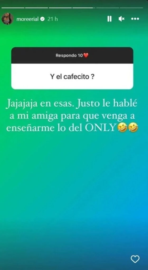 A lo que Morena, sin vueltas ni prejuicios, escribió: “Jaja en esas. Justo le hablé a mi amiga para que venga a enseñarme lo del Only”. De esta forma, la hija de Rial dejó en claro que planea sumarse a la aplicación que vende contenido, en muchos casos hot, tal como lo hace y lo promociona Cande Tinelli.