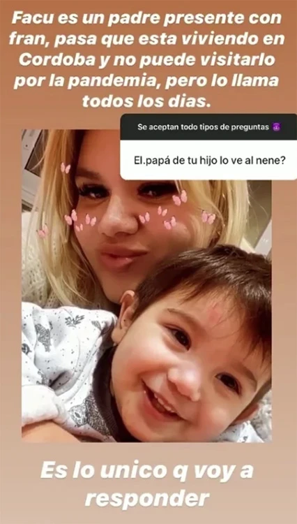 “¿El papá de tu hijo lo ve al nene?”, le consultaron. Y Morena fue sincera: “Facu es un padre presente con Fran. Lo que pasa es que está viviendo en Córdoba y no puede visitarlo por la pandemia, pero lo llama todos los días”.
