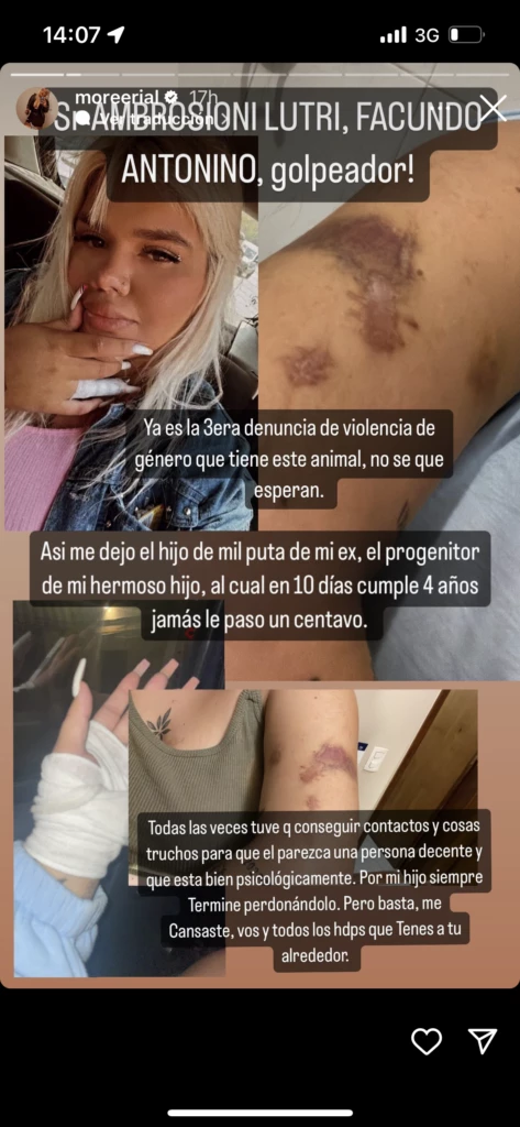 Fue entonces que Morena decidió romper el silencio mediante sus redes sociales y escrachó al padre de su hijo con varias publicaciones: “Cuando tu ex es golpeador, manipulador y encima compra cosas robadas”.