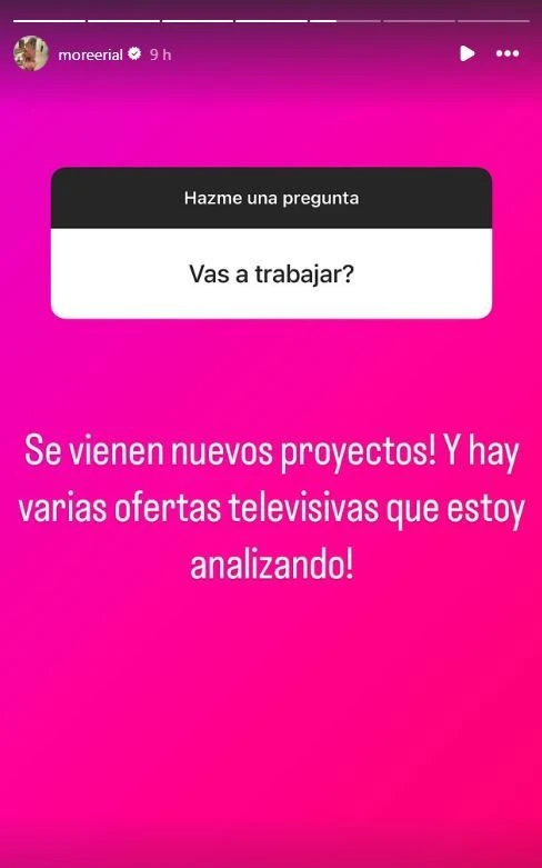 Morena dijo que quiere enfocarse en hacer plata y salir adelante. “¡Se vienen nuevos proyectos!”, aseguró, aunque no dio más detalles. También contó que su familia es lo más importante y que va a hacer todo lo posible para estar bien con ellos.