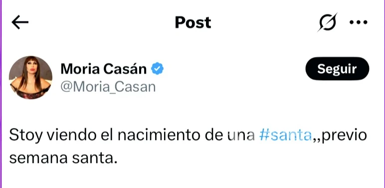 La novedad la relataron en Puro Show, donde el conductor Matías Vázquez explicó la postura de la diva: “Moria tomó partido pero por Lizy y en las redes hizo una publicación que dice ‘estoy viendo el nacimiento de una santa previo a semana santa’. Haciendo referencia a esta Canosa que busca hacer justicia, porque fue durante el programa de Viviana”.