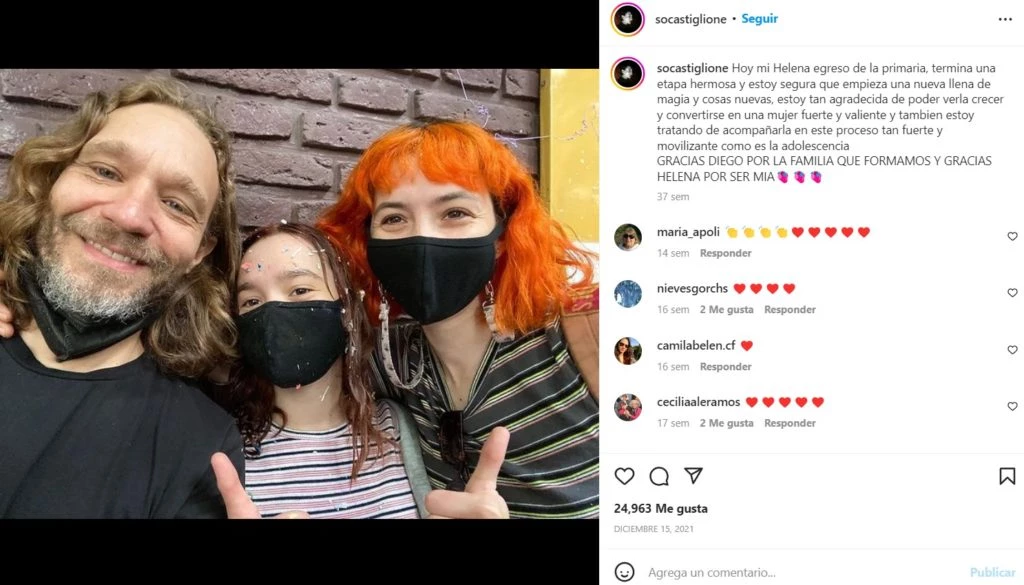 “Hoy mi Helena egresó de la primaria, termina una etapa hermosa y estoy segura de que empieza una nueva llena de magia y cosas nuevas; estoy tan agradecida de poder verla crecer y convertirse en una mujer fuerte y valiente y también estoy tratando de acompañarla en este proceso tan fuerte y movilizante como es la adolescencia”, sostuvo la actriz. Y agregó: “Gracias, Diego, por la familia que formamos y gracias Helena por ser mía”.