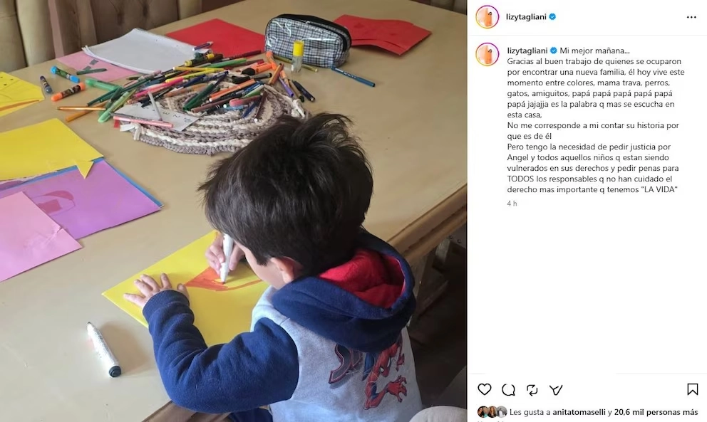 Mientras la investigación por la muerte de Ángel sigue en curso y se esperan avances clave en la causa, el gesto de Lizy Tagliani sumó una voz más —pero con un peso emocional distinto— al reclamo colectivo. No fue solo un posteo: fue una forma de transformar el dolor en un mensaje claro. Y, sobre todo, de recordar que detrás de cada caso hay una historia que merece ser cuidada.