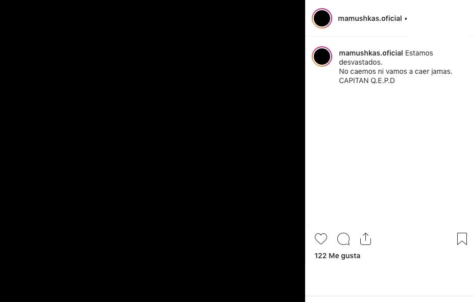 Sus compañeros del grupo musical utilizaron las redes sociales para expresar su dolor y las condolencias a todos los seres queridos del cantante. Con una imagen negra, escribieron: “Estamos devastados. No caemos ni vamos a caer jamas. CAPITÁN Q.E.P.D”.