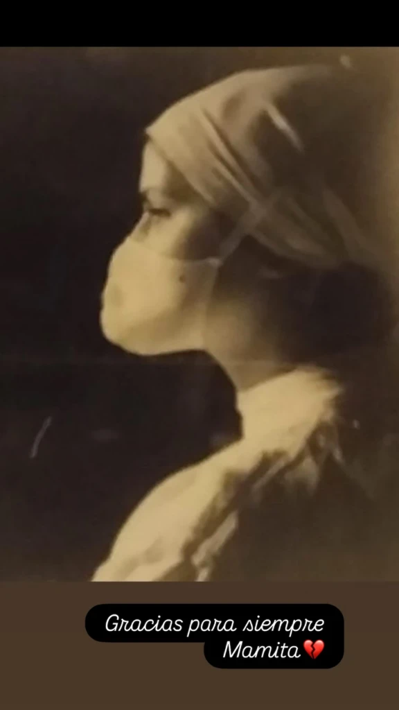 Mediante su cuenta de Instagram, Nancy decidió compartir una foto de su madre donde se la ve de perfil con un barbijo y cofia de enfermera. La postal es de la juventud de Elsa, en blanco y negro. Fue entonces que escribió: "Gracias para siempre, mamita".