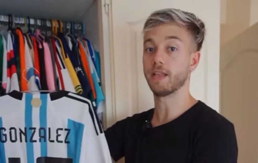 “Si salimos del living hay un balcón. Después, donde estoy todo el día es en mi cuarto de streaming, de juegos. Soy mucho de jugar a la Play, al FIFA. ahora que salió el nuevo casi que ni me muevo de acá. Tengo una foto con Coque va cambiando de color y también acá mi colección de camisetas de futbol”, detalló el ex de la Tora Villar.