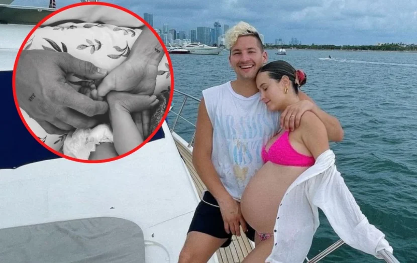 En el carrosusell de fotos, de esta manera compartió las primeras imágenes del bebé. En las mismas se muestran partes del cuerpo, como las manos y los pies del bebé junto a las manos de sus padres Sara Escobar y Mau.