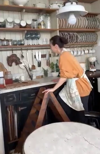 Los usuarios quedaron impactados al ver la decoración, entre las que se incluye la mantelería, los muebles de madera de campo: las alacenas, un platero que cubre gran parte de una de las paredes, un extenso bajo mesada de madera, pintado de color negro. Además, otro aspecto que no pasó desapercibido fue la disposición de toda la vajilla, ollas y frascos a la vista, lo que le permite un fácil acceso a todos los elementos.