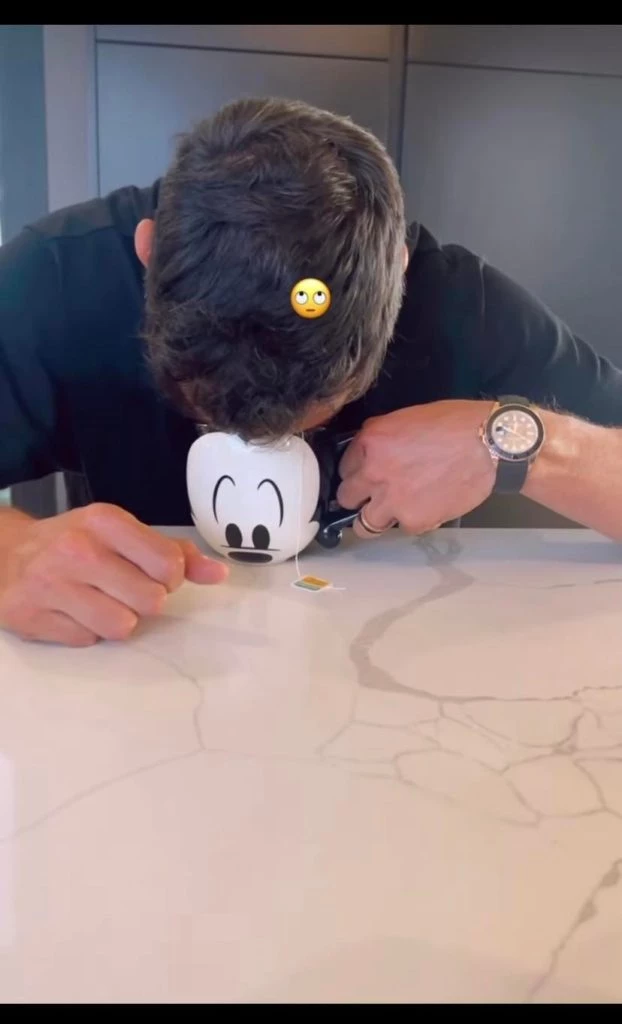 Durante el desayuno, y mientras tomaba un té bien caliente en un tazón bastante grande Zárate metió la cabeza en esa vajilla para respirar el vapor que salía de la infusión. Al verlo, su esposa, grabó ese divertido momento y lo subió a sus redes sociales.