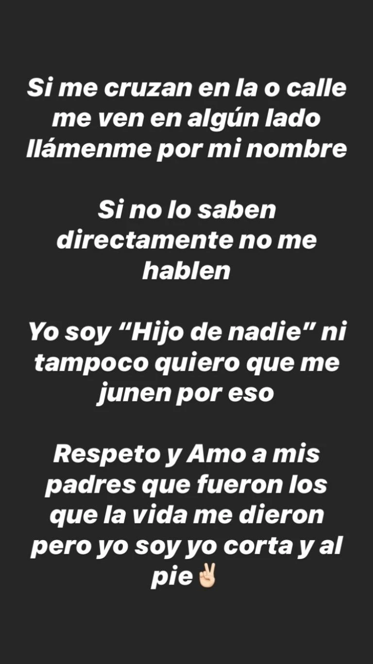 El joven influencer no especificó del todo el origen de la pelea, pero dejó entrever que se desencadenó por desavenencias con madre. En los vivos que realizó en su perfil de Instagram, el cantante hizo catarsis y soltó frases como: “Yo por mi parte venía cubriendo varias, me venía bancando varias. Pero ya que me forreen y que no me dejen ir a buscar las cosas a mi casa, no. Es totalmente contradictorio porque me alejé de todo eso para irme del puterío, de lo que no me sirve, pero ya hay cosas que no me aguanto”.
