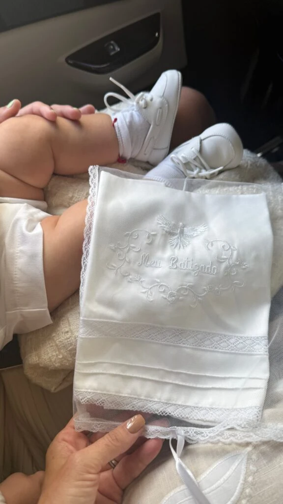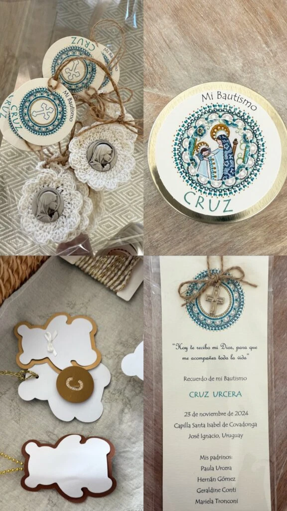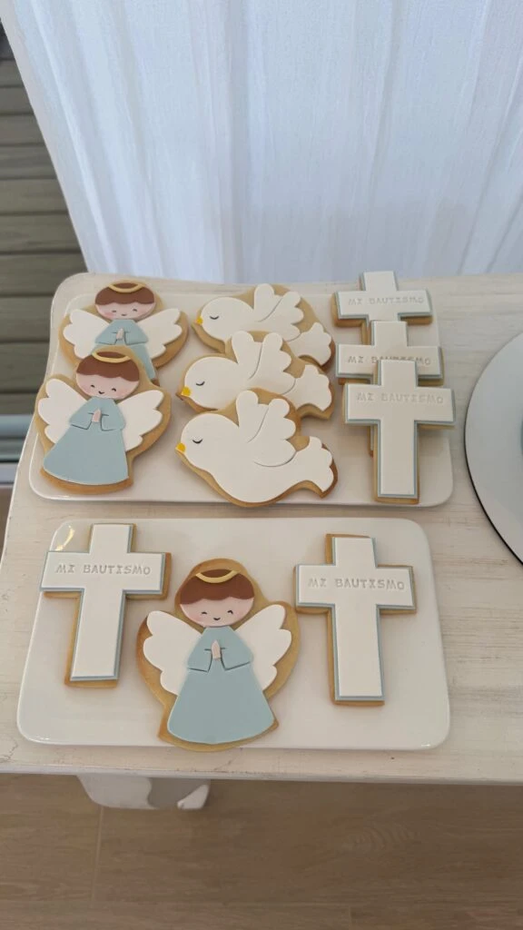 También mostró unas galletitas temáticas para el evento, con formas de angelitos, cruces y palomas. En los souvenirs también se pueden ver que tienen formas de ositos, medallas con cruces y algunos diseños de la Virgen. Por otro lado, también se podía ver el outfit que llevará el bebé, todo un conjunto y zapatillas de color blanco. La ternura es total.