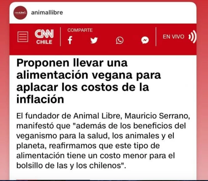 "Además de los beneficios para la salud, los animales y el planeta, reafirmamos que este tipo de alimentación tiene un costo menor para el bolsillo de los y las chilenas", explica el artículo periodístico que compartió Nicole con todos sus seguidores en redes sociales, y que generó una verdadera "revolución".