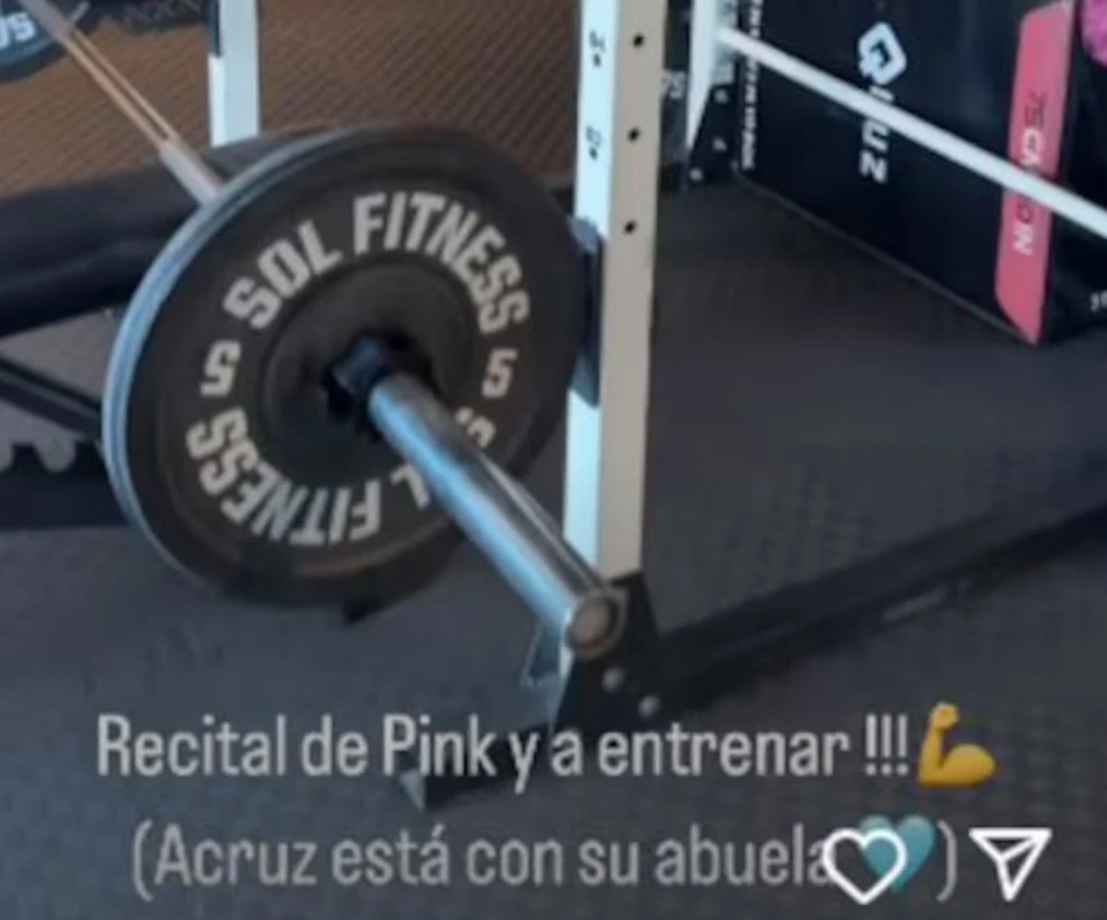 “Recital de Pink y a entrenar. Cruz está con su abuela”, compartió Neumann mediante un posteo en su historial en donde se la ve aprovechando el gimnasio que tiene montado en su casa y al que ahora pudo volver a frecuentar ya que Cecilia Roza, su suegra, le está cuidando al bebé por estos días.