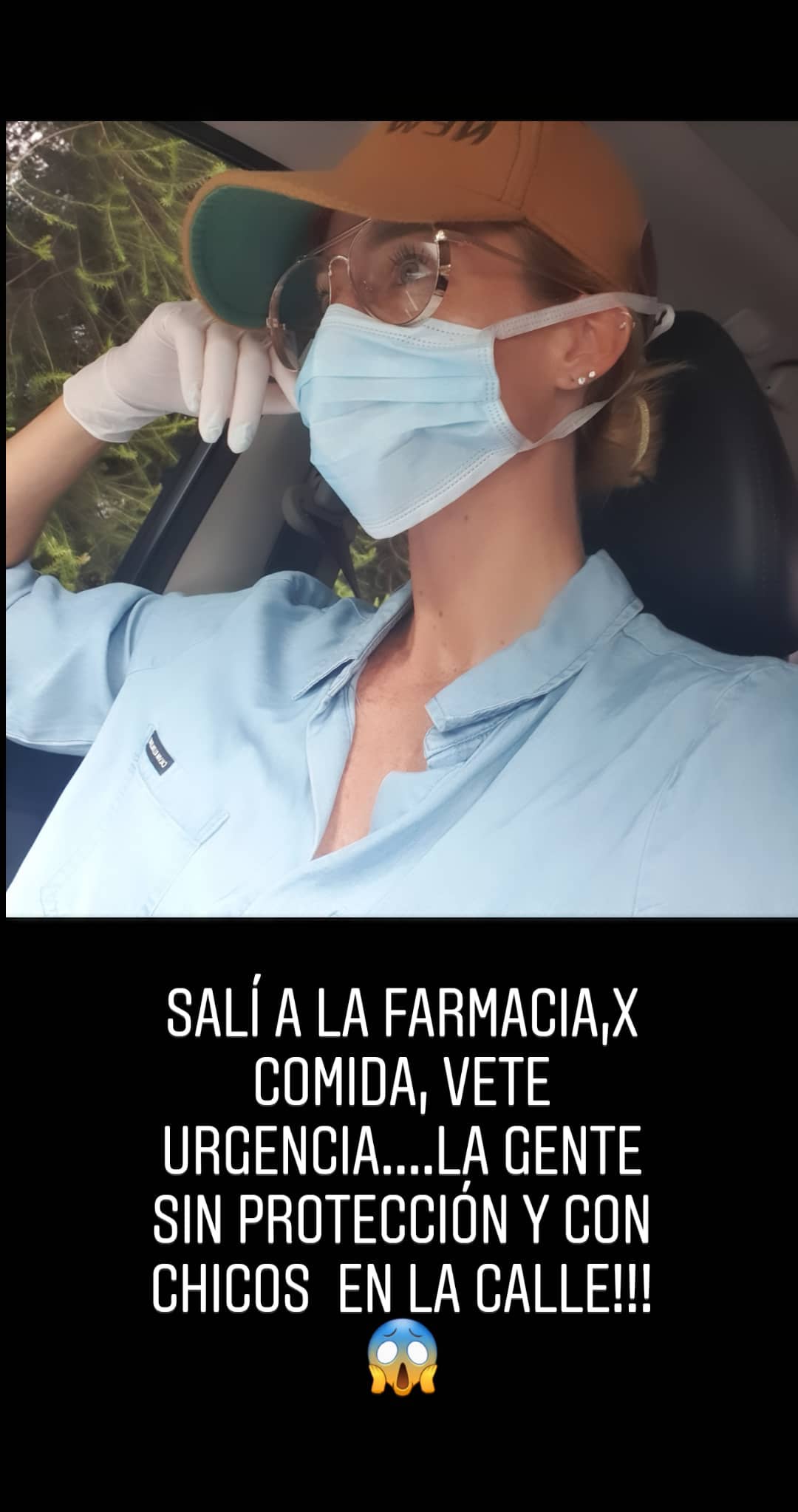 Indignada escribió en sus redes sociales: "Salí a la farmacia, por comida, veterinario de urgencia y la gente sin protección y con chicos en la calle", indicó enojada la modelo a través de su Instagram.