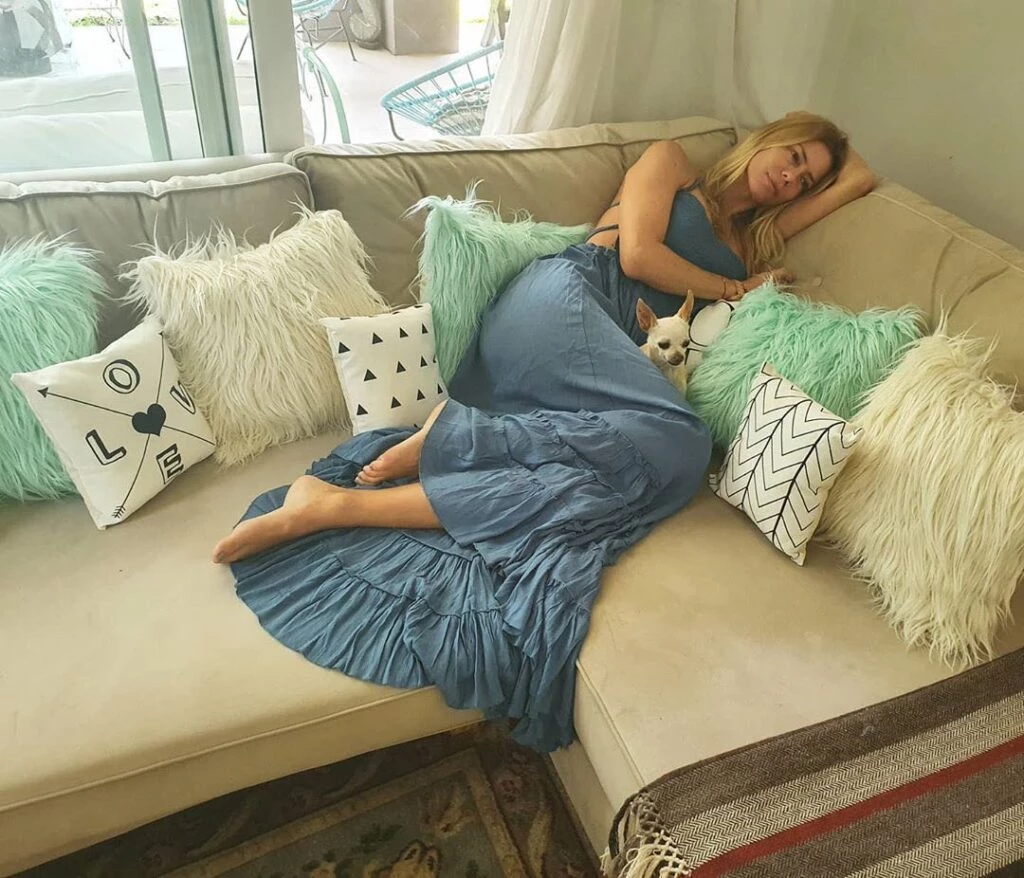 Además, en el living de Nicole Neumann hay una mesa ratona de madera robusta con una pátina vintage. Allí, se encuentra un florero de vidrio con rosas, libros de Frida Kahlo y más objetos típicos de decoración, que le da estilo al lugar preferido de la casa.