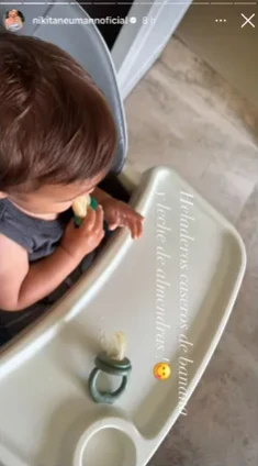 En detalle, la famosa modelo, y también mamá de Indiana, Allegra y Sienna Cubero, fruto de su ex matrimonio con Fabián Cubero, compartió en sus historias de Instagram, una tierna postal de su bebé comiendo en su sillita.