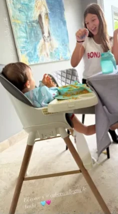 Previo a esa historia de Instagram, la también diseñadora, influencer y súper mamá compartió una foto de Cruz almorzando con su hermana Allegra. "Él come y @cubero.allegra le baila", comentó Nicole en esa divertida publicación de su hija adolescente y su bebé de 8 meses disfrutando de un momento en familia en la intimidad de su hogar.
