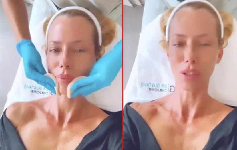 Tumbada en una camilla, la modelo prendió el celular y grabó un poco de la técnica a la que se sometió para la dermis. Incluso, la rubia le habló a la cámara para describir un poco de las características de esta intervención estética a la que se brindó.
