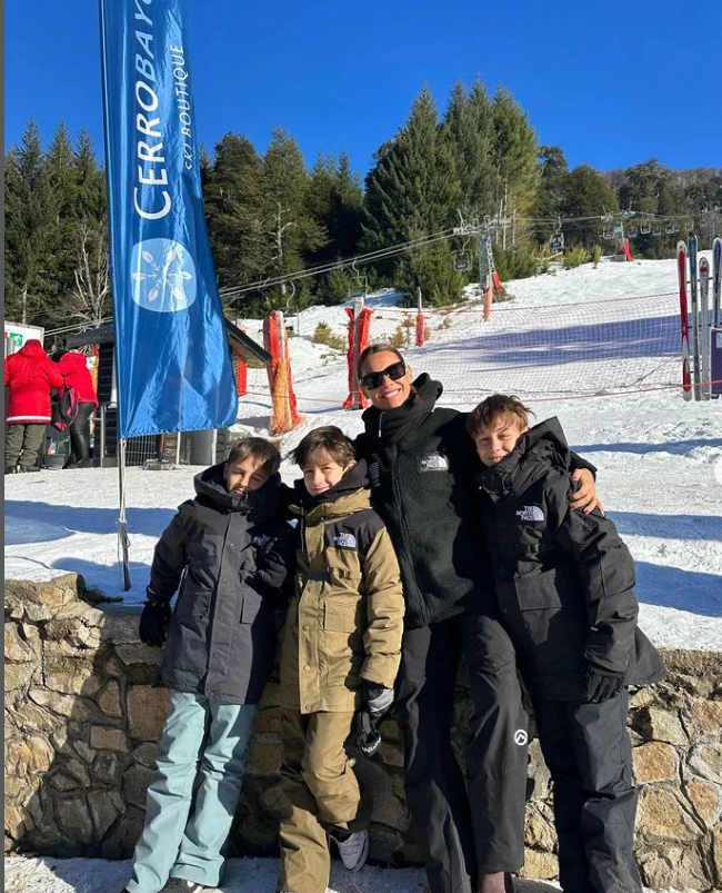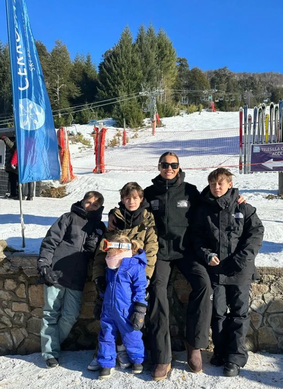 Ahora la modelo ya en nuestro país, tras volver de la enorme experiencia que vivió con su hijo, armó de nuevo las valijas y decidió llevar a sus hijos más chicos y a su sobrino a disfrutar de la nieve y del Sur de nuestro país. A través de las redes sociales mostró el día a día que viven jugando en la nieve y realizando diferentes actividades en el reconocido Cerro Bayo.