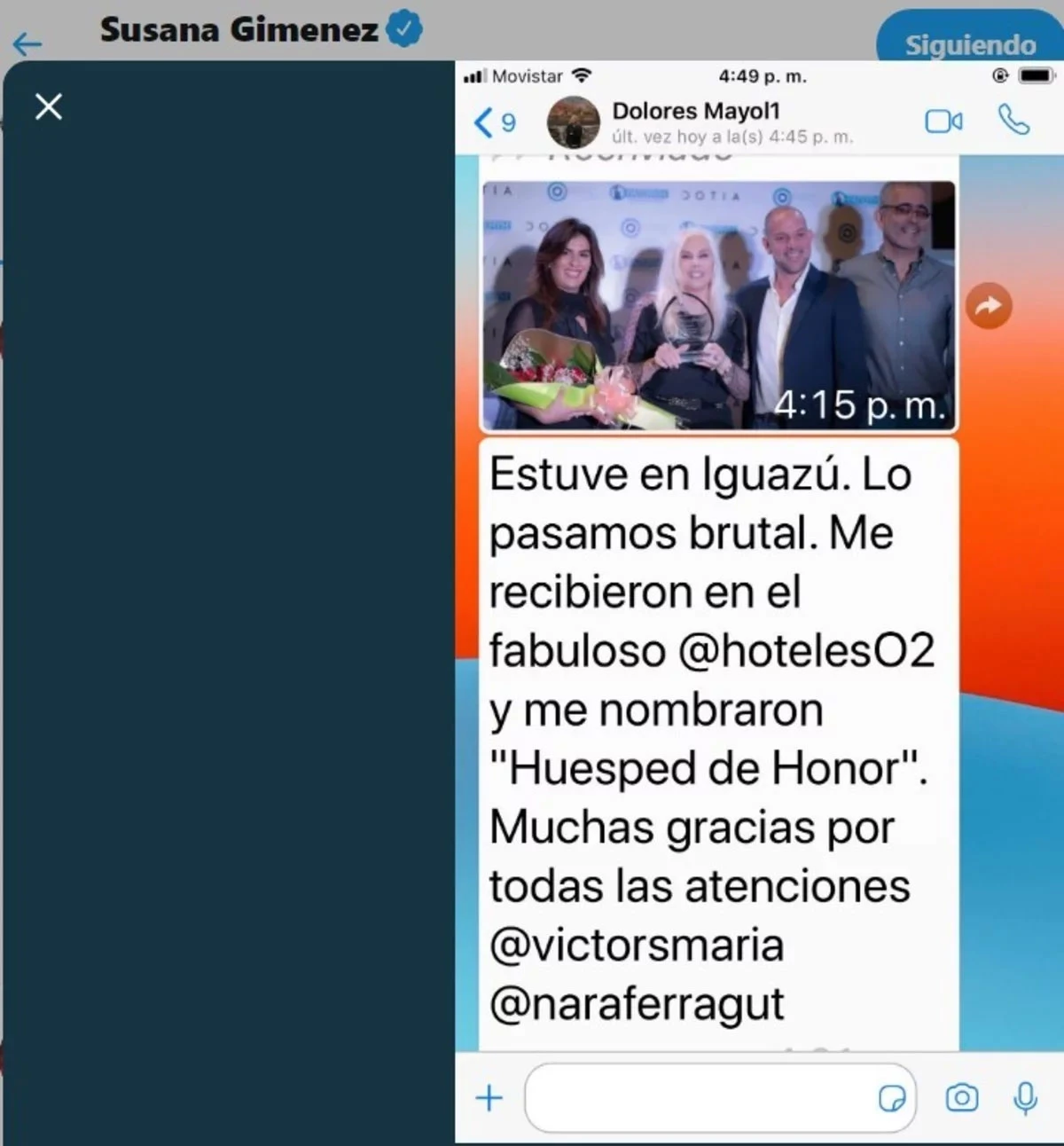 Los insólitos errores de Susana Giménez en las redes sociales ya son un clásico. En esta oportunidad, la diva de los teléfonos hizo estallar de risa a sus seguidores al compartir por error en su cuenta de Twitter la impresión de pantalla de una conversación que había tenido con su asistente, Dolores Mayol.