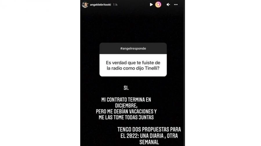 “Sí. Mi contrato termina en diciembre, pero me deben vacaciones y me las tome todas juntas”, posteó en sus historias. Esta respuesta no sorprendió a muchos de sus seguidores luego de que el periodista meses atrás en sus redes sociales comentara que le quedaría “poco tiempo” de pertenencia en la emisora.