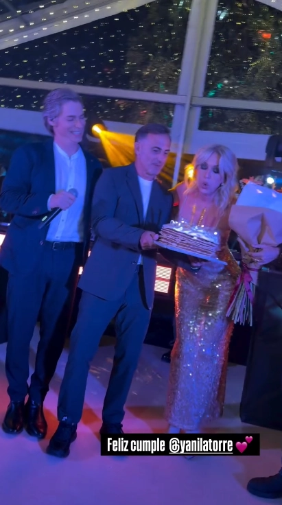 Pero la noche tuvo sorpresas. En medio de la celebración apareció Carlos Baute, invitado estrella, con un enorme ramo de flores que le regaló a la anfitriona antes de hacer un show en vivo. El cantante interpretó varios de sus hits y logró que todas se levantaran a bailar, elevando el clima de la fiesta a otro nivel.