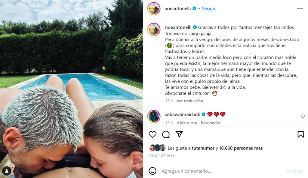 EL TIERNO POSTEO DE NOE ANTONELLI A TRES MESES DE SU EMBARAZO
