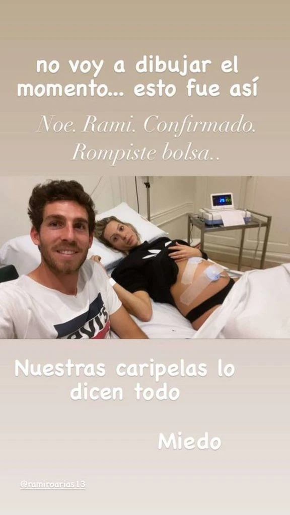 “No voy a dibujar el momento. Esto fue así. ´Noe, Rami, confirmado, rompiste bolsa´. Nuestras caripelas lo dicen todo. Miedo”, escribió la artista de Sex, Viví tu experiencia, con una postal de los dos, ya en la habitación del sanatorio.