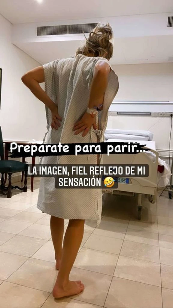 Luego se la puede ver de espaldas, en bata, tomándose fuerte de la cintura, en plena contracción. “Preparate para parir. La imagen, fiel reflejo de mi sensación”, siguió. ¿Y Ramiro? “Alto potro”, expresó Noe sobre su marido en la foto en la que ya se lo ve vestido de blanco, con cofia y barbijo, preparado para entrar con ella a la sala de parto.