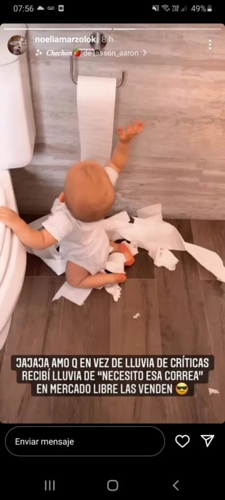 También difundió imágenes en su instagram en las que Donatello hizo un verdadero "desastre" con el papel higiénico en el baño. Igualmente, no hay demasiado para quejarse: Noelia está afianzada en lo laboral y en el amor. Y también es una mamá que tiene para entretenerse.
