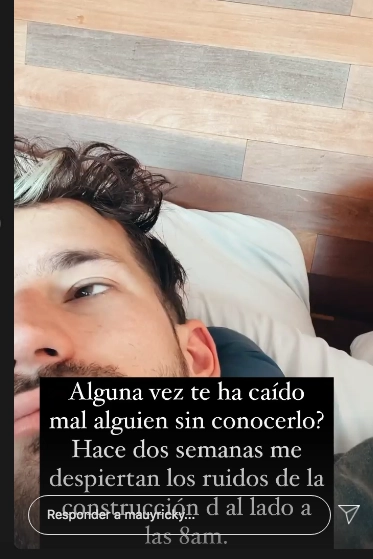 Ricky posteó una foto en la cama, con cara de dormido, y denunció lo que sufre cada mañana: “¿Alguna vez te ha caído mal alguien sin conocerlo? Hace dos semanas me despiertan los ruidos de la construcción de al lado a las 8 am”.