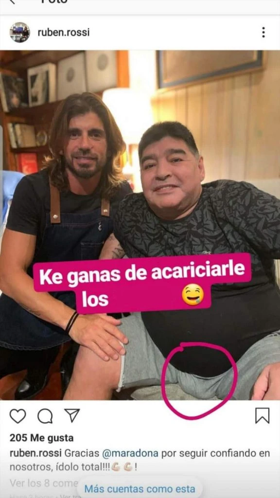Todo comenzó cuando Diego visitó a su estilista Rubén Rossi, quien compartió una foto de ambos sentados en un sillón y le agradeció al DT que siga confiando en su trabajo. Sin embargo, en la emoción de publicar la imagen no se percató de un pequeño detalle: se puede ver muy claras las partes privadas de Maradona.