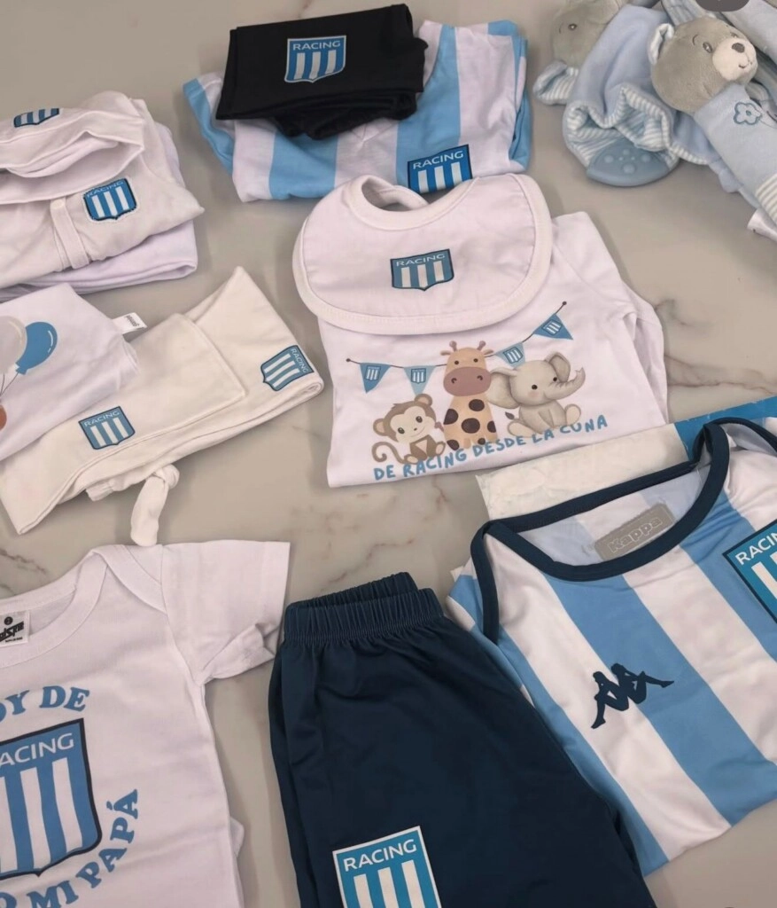 Tal como compartió la flamante mamá un mes atrás, el pequeño tenía fecha de parto para alrededor del 6 de febrero, por lo cual ella misma se encargó de preparar el bolso y lavar las prendas para el recién nacido que, siendo que tiene padres fanáticos de Racing, de ahora en más lucirá "outfits" de La Academia. La camiseta y el pantaloncito, qué tanta palabra en inglés.