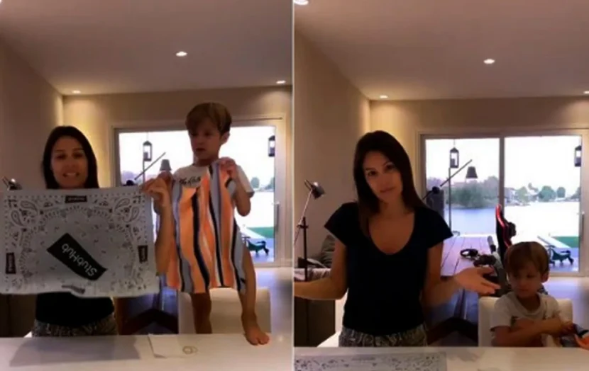Uno de los aspectos más salientes del video fue el compañero de Pampita, que tuvo como asistente de lujo a su hijo Beltrán. El pequeño lució desenvuelto, muy atento a las indicaciones y también estuvo muy verborrágico. El primogénito de la morocha dejó algunas frases muy tiernas como: “Así no contagiás a tus papás, ni a otras personas, ni a tus amigos”.