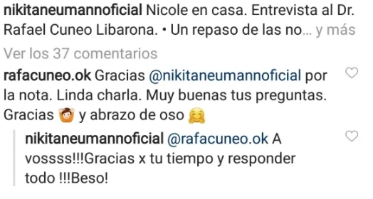Como si fuese poco, el letrado saltó a la plataforma de Nicole para estampar un mensaje que se puede interpretar como una indirecta. El hombre de las leyes le escribió a la modelo: “Gracias por la nota, linda charla. Muy buena tus preguntas. Gracias y abrazo de oso”. El cierre encendió las alarmas, por tratarse de un saludo muy cariñoso, que implica confianza.